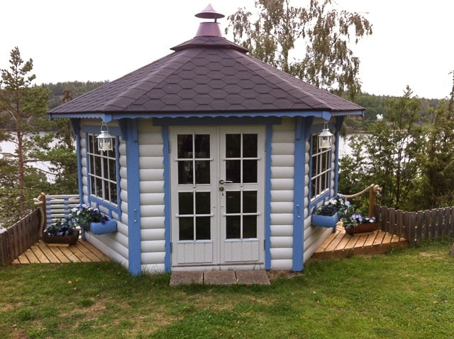 Lusthus Victoria Royal class är en vacker och mångsidigt lusthus. Robusta väggar och dubbla fönster håller värmen inuti, även om det är kallt ute. På sommaren ger öppningsbara fönster dig möjlighet lufta lusthuset då det är varmt ute.och att njuta av god mat med familj och vänner. Under kvällen, vid elden, kommer berättelser till liv. När natten kommer kan du vika bänkar och tillbringa en minnesvärd natt i lusthuset och lyssna på naturens ljud.